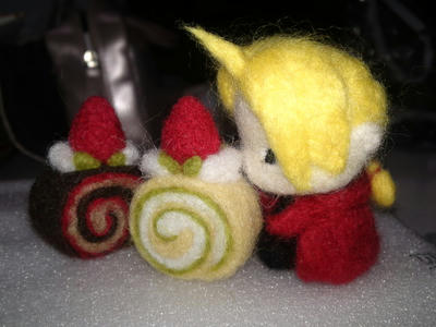 アニメ見るぐらいしかやってないのかと言われれば、その他の時間は睡眠時間と食事も削ってニードルフェルティングに熱中してます。写真添付したもの。ツイッターで絶賛フォロー中のえどえどbotをモデルに作った羊毛えどえどにお菓子を与えるべく日々羊毛スイーツを作る毎日です。今構想しているのは、羊毛えどえどと12ヶ月のスイーツ。いろいろと作りつつ、漫画も描いたりしたいなぁって思います。