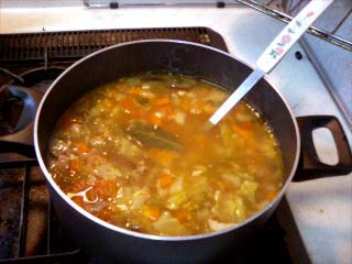 しかし泣いてばかりいても王子様が来るわけではないので、気持ちを切り替えるべくまたプチダイエットしようかと伝家の宝刀ミネストローネを作りました。それが今日の写真。鈴乃森の料理は男の料理なので具の大きさとか形とか本当にざっくりとしていて繊細さの欠片もありません。そして大味。私にとって料理はさながら実験です。これ入れたらどうかな、こうしたら美味しくならないかな、とあれこれ鍋に放り込みます。ハーブやスパイスといったものが大好きなのであるもので使えそうならどんどん入れます。魔女鍋です。ミネストローネは何を入れても許容しているので作りやすいのです。今回はデフォルトレシピにベーコン、茄子、白ワイン、ニンニクと生姜、ローリエを加えてグツグツしました。